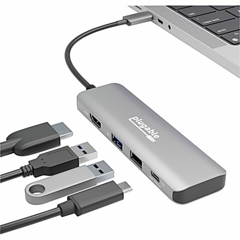 Plugable USB C Hub Multiport Adapter, 4 in 1, 100W Pass Through Charging USB C to HDMI 4K 60Hz - Multi USB Port Hub - USBC4IN1
